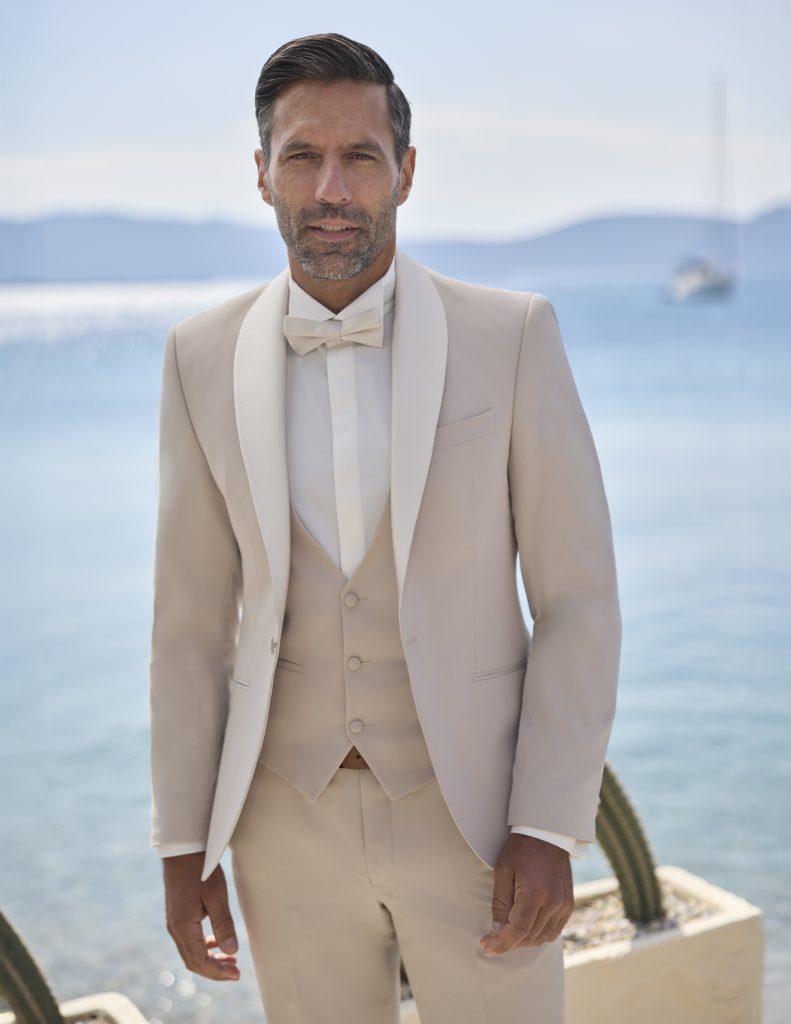 À côté de ces teintes sobres, une nouveauté se démarque : le blanc, l’écru et le verte sauge gagnent du terrain, surtout pour les cérémonies et les grandes occasions. Ces couleurs, autrefois jugées trop audacieuses, ajoutent maintenant une touche de raffinement. Elles s’accordent avec l’idée d’un costume moderne et lumineux, et deviennent ainsi une option crédible pour marquer les moments importants avec élégance.